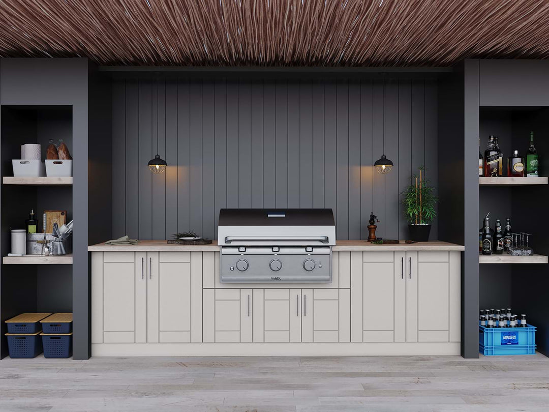 A timeless Shaker-style design, adapted for the outdoors. With a routed center panel and extended stile detail, Sanibel gives you that classic charm—without the upkeep.
